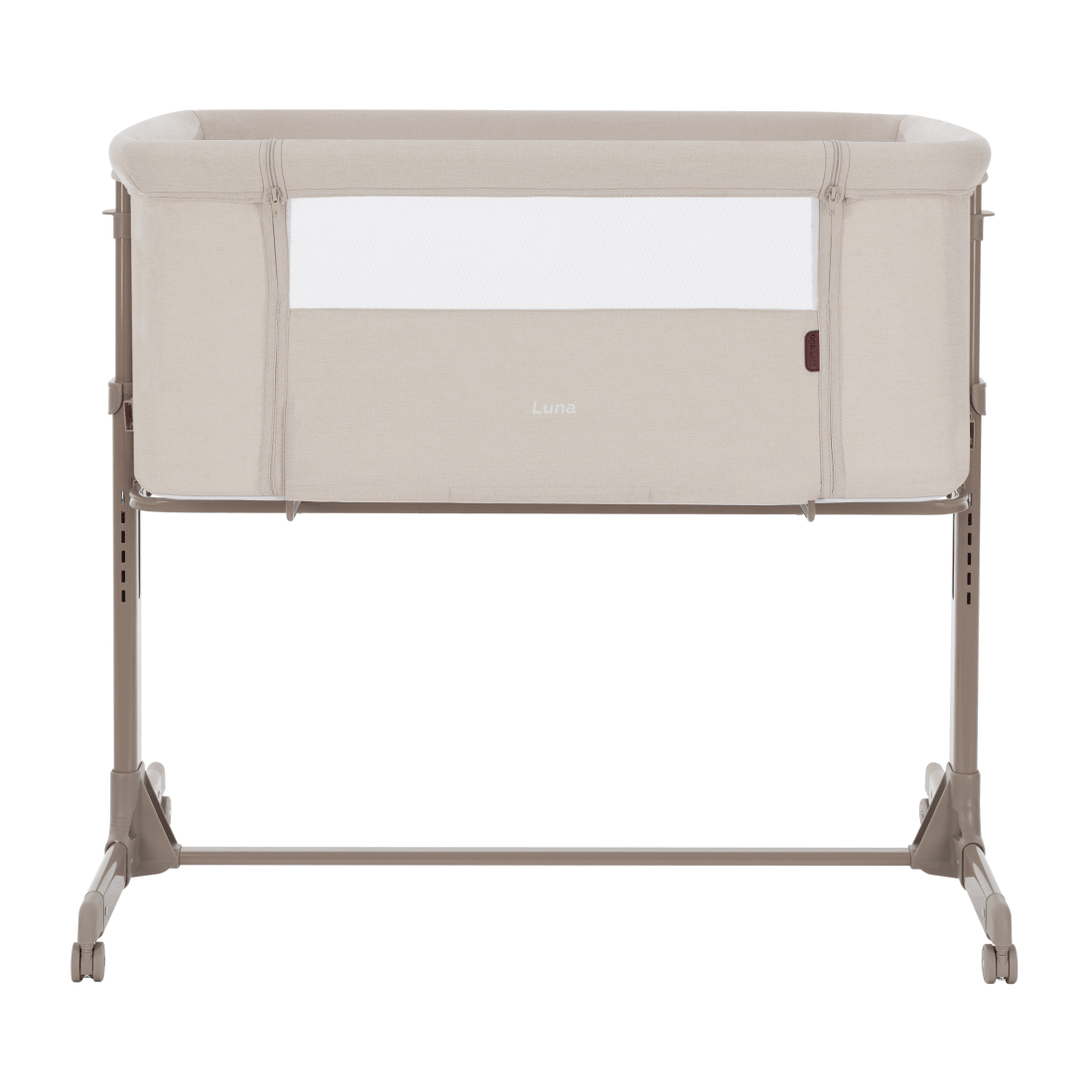 Súčasťou balenia sú aj popruhy proti prevráteniu, ktoré je možné pripevniť na matrac postele rodičov. Výšku je možné nastaviť do piatich polôh a bočný panel je možné spustiť pre ľahký prístup k dieťaťu. Postieľku je možné použiť ako hojdaciu postieľku, ak sa na nohy pripevnia kolísky, ktoré sú súčasťou balenia. Voľná cirkulácia vzduchu, matrac správnej tvrdosti a hypoalergénne materiály zaručujú zdravý spánok pre dieťa. Výška postieľky sa reguluje v 6 polohách. Možnosť nastaviť sklon podstavca pomôže pri prechladnutí a zabezpečí voľné dýchanie dieťaťa. Na otvorenie bočnej časti rozopnite zipsy na oboch stranách, stlačte tlačidlo zámku a potiahnite vodiacu lištu nahor. Spánok spolu s mamou umožní dieťaťu cítiť sa bezpečnejšie a výrazne uľahčí nočné kŕmenie. Teleskopické nohy umožnia priblížiť postieľku Luna k rodičovskej posteli s akoukoľvek konštrukciou podstavca. Všetky kolieska sú uzamknuté (4 kolieska)