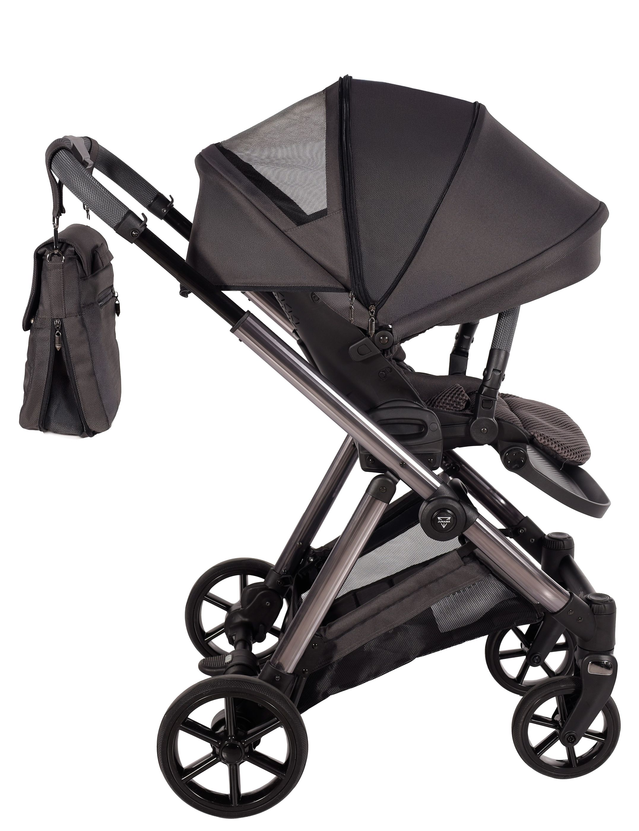 Kočík JUNAM ELEGANTE je pohodlný s výbornou bavlnenou podšívkou. Rýchle nasadenie na konštrukciu. Samozrejmosťou je možnosť zmena smeru jazdy. Rám kočíka sa dá na prepravu jednoducho zložiť a zaberie veľmi málo miesta. Športová časť sa zloží aj s konštrukciou kočíka.